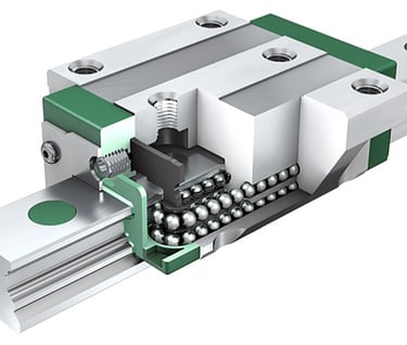 Linear guides use recirculating rolling elements between the rail and carriage block, making them ideal for high-velocity and high-accuracy applications